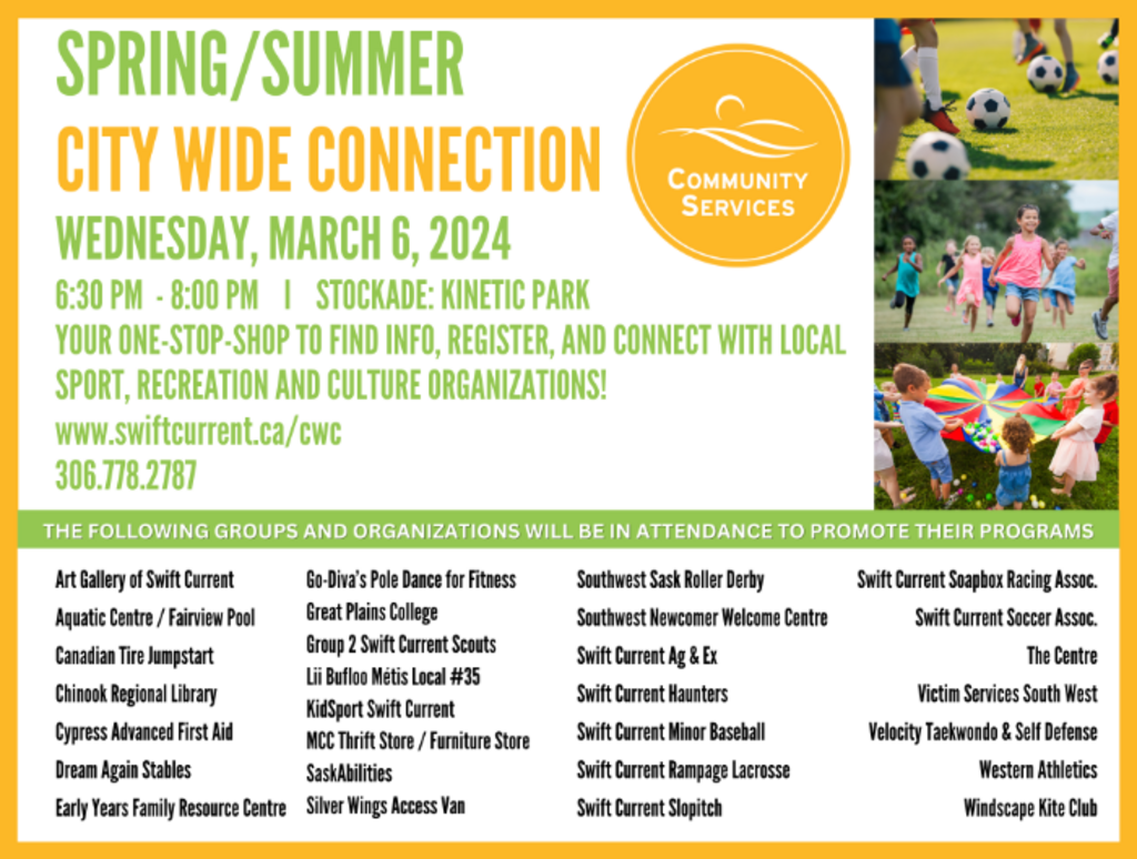 City Wide Connection, is a great opportunity for community members to connect and register with a wide variety of local sport, recreation and culture activities. City Wide Connection has something for all ages!
