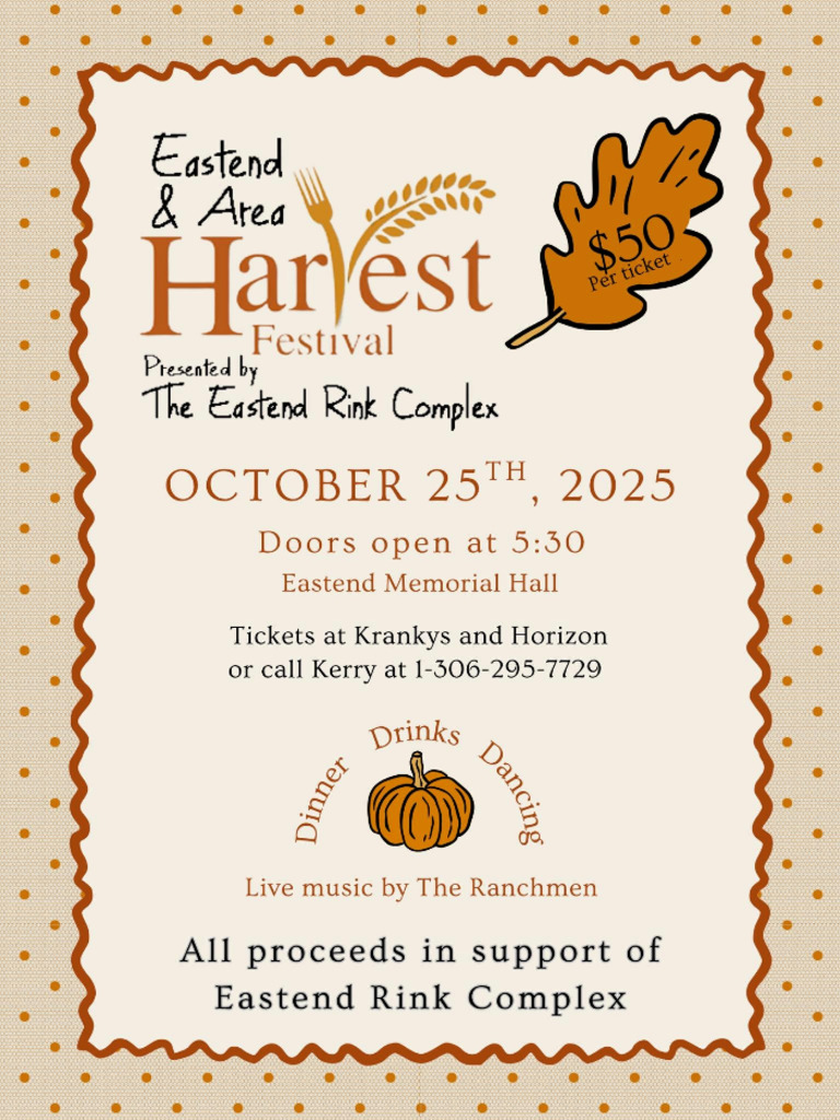 All proceeds support the Eastend Rink Complex โ come celebrate the season and support a great community cause!