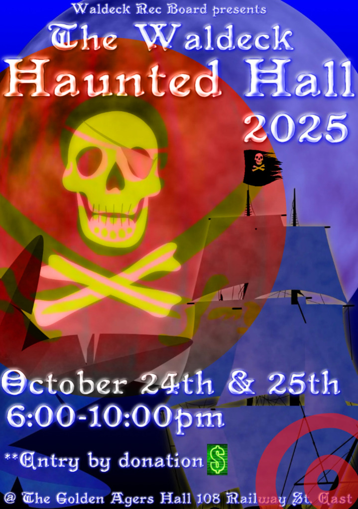 Come one- come all- to the Waldeck Haunted Hall! October 24th & 25th 6:00-10:00pm. Entry by donation $.