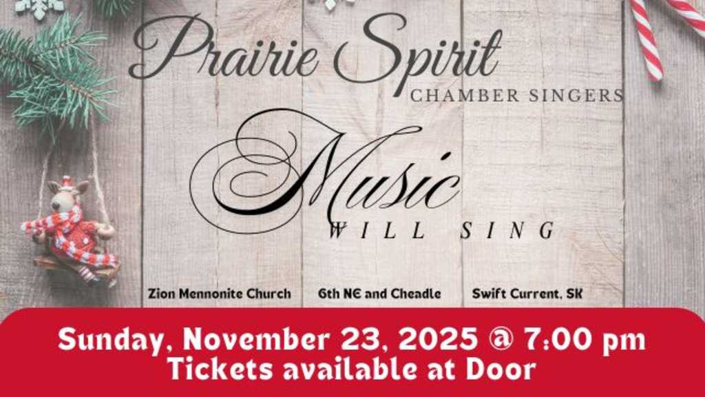 7:00 pm - Zion Mennonite Church - 6th NE and Cheadle - Swift Current