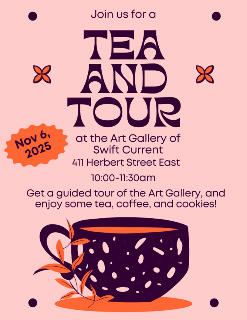 To celebrate seniors' week: Join us for a free tour and tea at the Art Gallery of Swift Current on November 6th, 2025.
