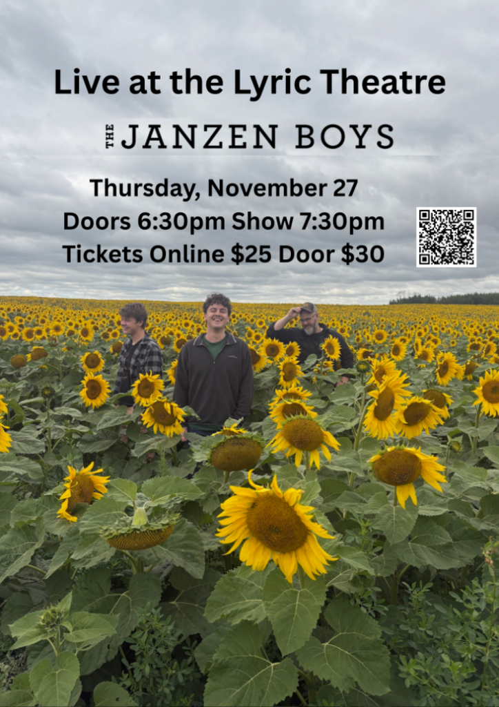 We’re wrapping up our year of touring with a cozy evening of live music in Swift Current! We’ll be bringing our harmonies, heartfelt stories, and folk-country sound to the Lyric Theatre.