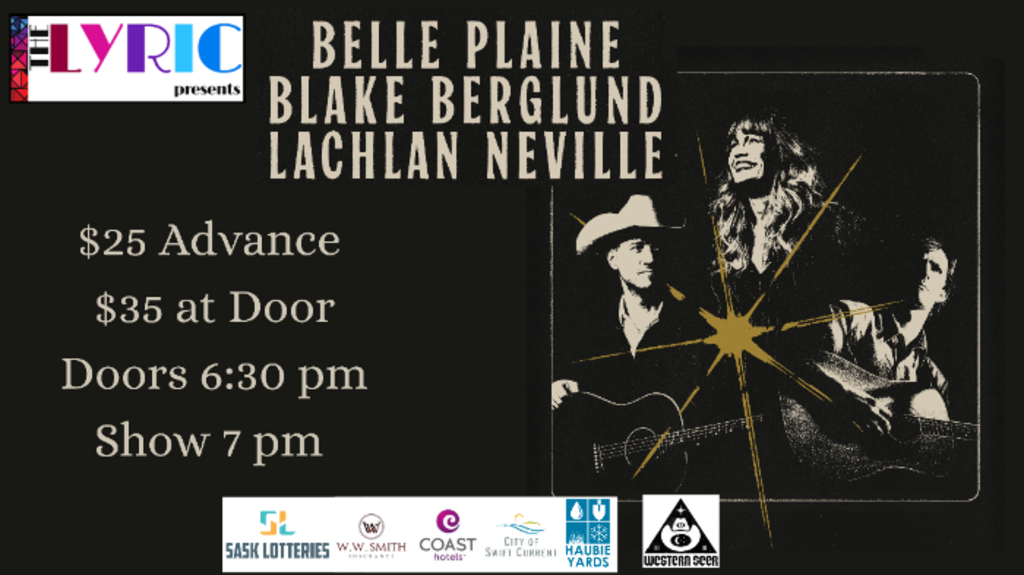 Tickets $25 advance https://lyrictheatre.ca/event/blake-berglund-belle-plaine-lachlan-neville/