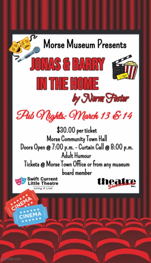 Jonas & Barry in the Home hits the stage for two nights at the Morse Community Hall in Morse, SK. Friday, March 13 and Saturday, March 14. Doors open at 7:00 p.m. and Show begins at 8:00 p.m. Pub Nights both nights. Cost is $30.00 per person and minors are allowed if accompanied by their parent. Adult Humour. Advanced tickets can be purchased at the Town office by calling 306-629-3300