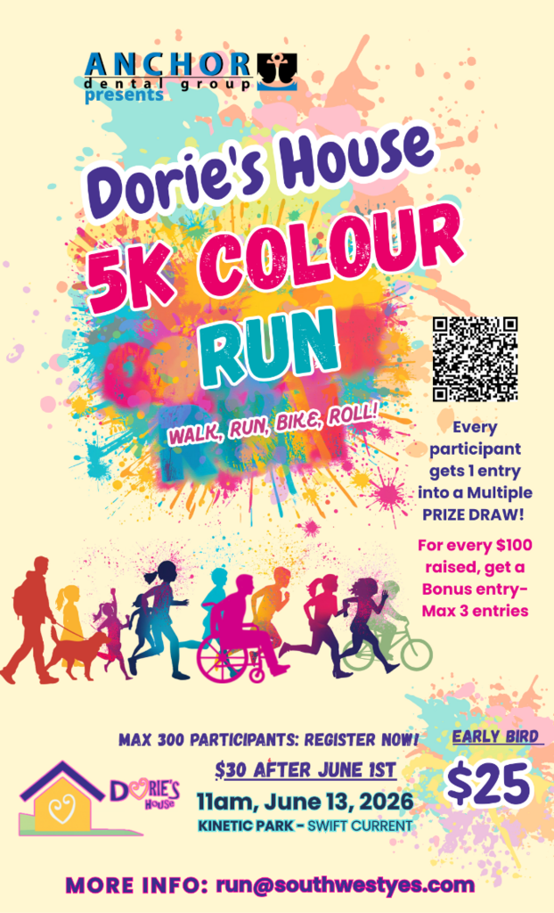 This untimed event is open to all ages, marathoners, runners, walkers, blades, strollers, and wheelchairs (only 300 spots!). We are also a pet friendly event! Every registered participant will have a chance to win some amazing prizes! The 5K Colour Run will be utilizing the Chinook Pathways here in Swift Current, SK, with the starting and finishing line at Kinetic Park/Saloon.