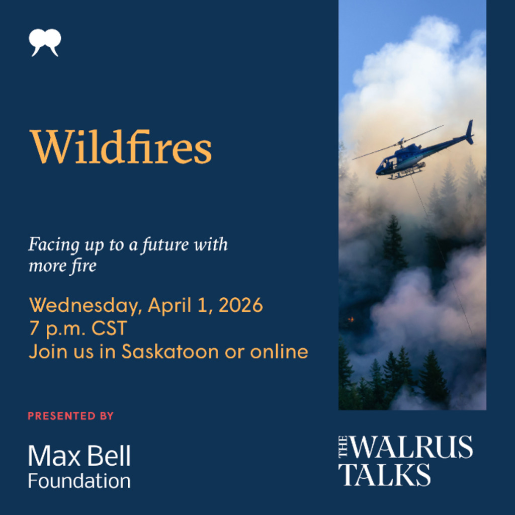 Live in Saskatoon and streamed online, this event is an opportunity to hear from leading experts, engage with the latest research and perspectives, and explore promising solutions that can shape Canada’s response. Join us at The Walrus Talks Wildfires to be informed, engaged, and part of the conversation.