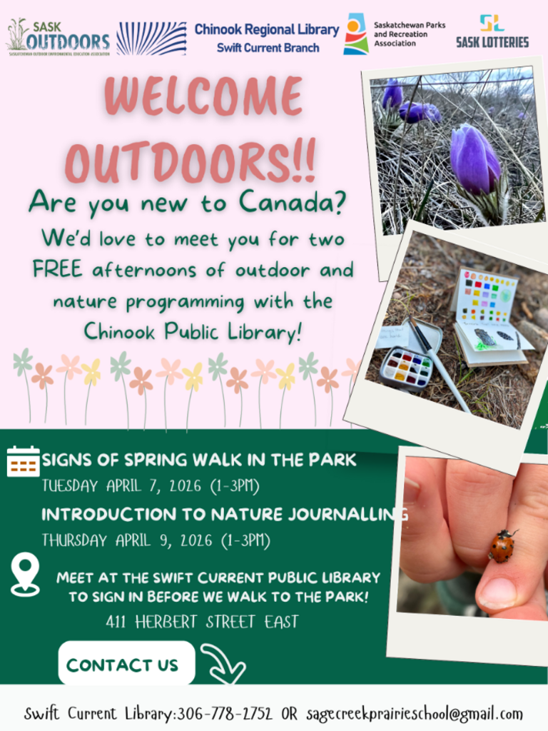 If you have any questions please contact the library at 306-778-2752 or the organizer at sagecreekprairieschool@gmail.com